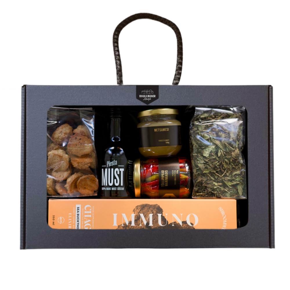 Stiilses mustas karbis kinkepakk, mis toob tervist ja head enesetunnet igasse päeva. Seest leiab Chaga eliksiiri astelpajuga, mis annab jõudu ja vastupidavust, krõbedad kaerahelbeküpsised väikseks maiuseks, turgutava metsamee ning vitamiinidest pakatava mustsõstraeliksiiri Piesta MUST. Vürtsikust lisavad marineeritud tšillipiprad, rahu ja tasakaalu aga tassitäis värskendavat piparmünditeed. Hea turgutuskohver kaasa haaramiseks!